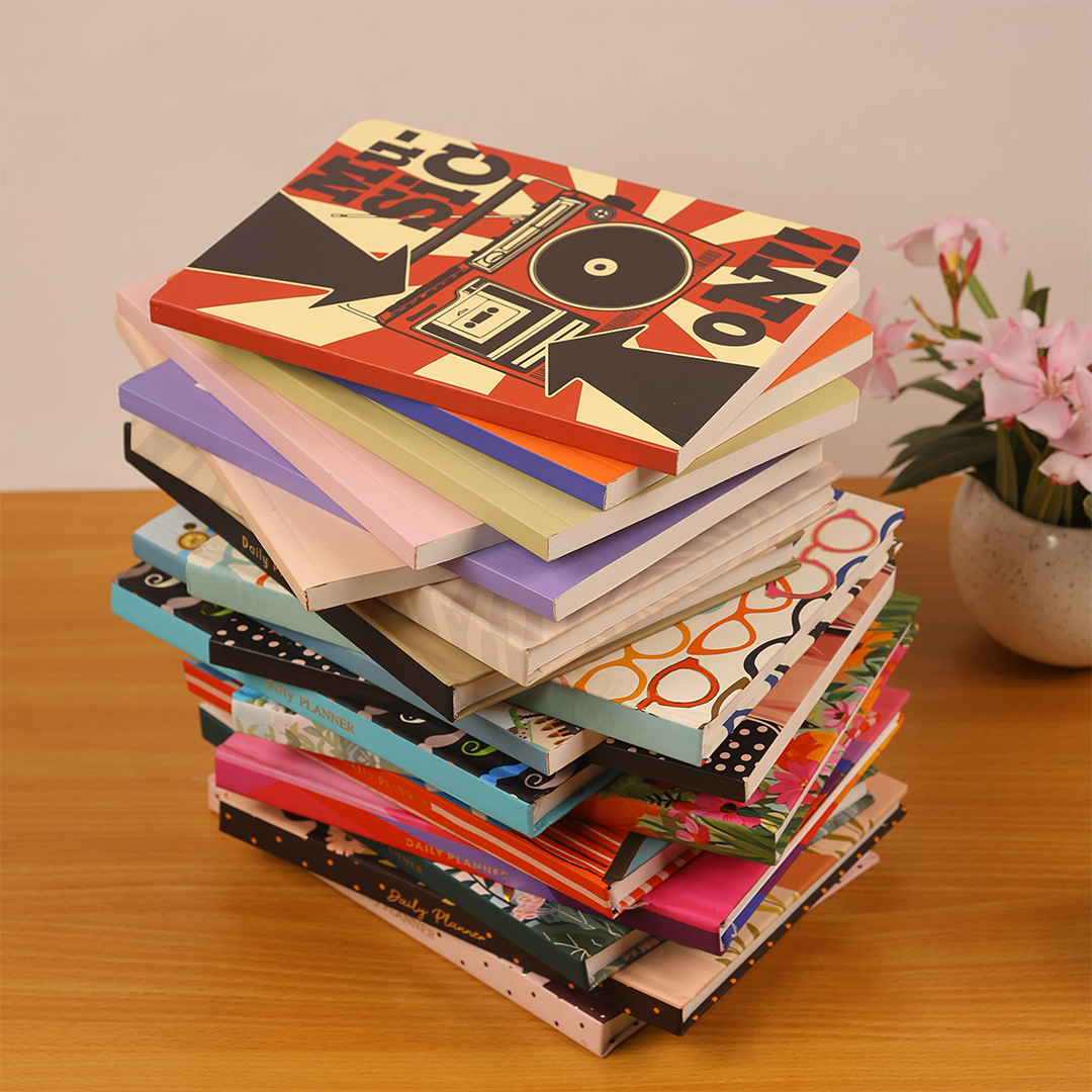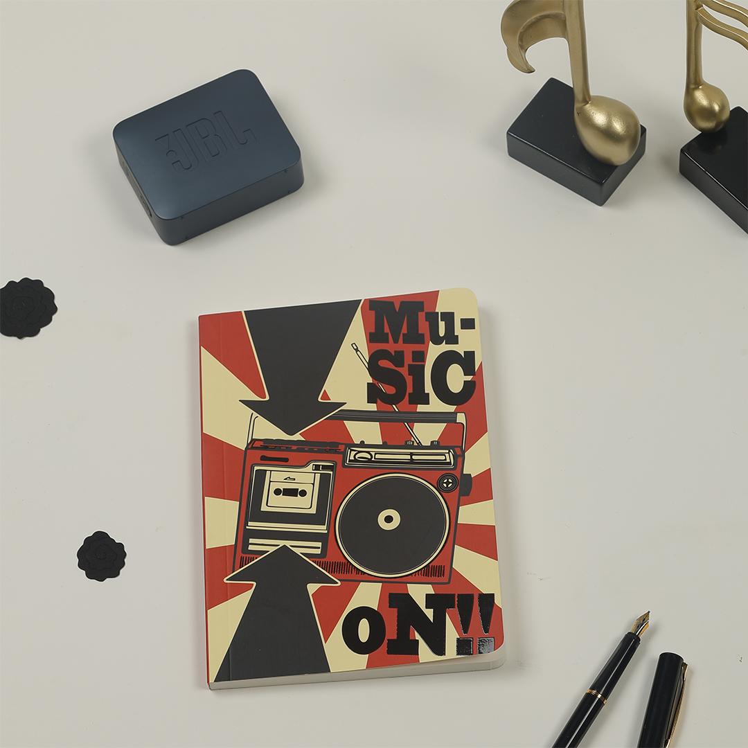 Feel the rhythm of creativity with the Music Vibes A5 Notebook. Featuring a UV-finished soft cover and 192 smooth pages, this notebook is perfect for lyrics, notes, or personal thoughts.